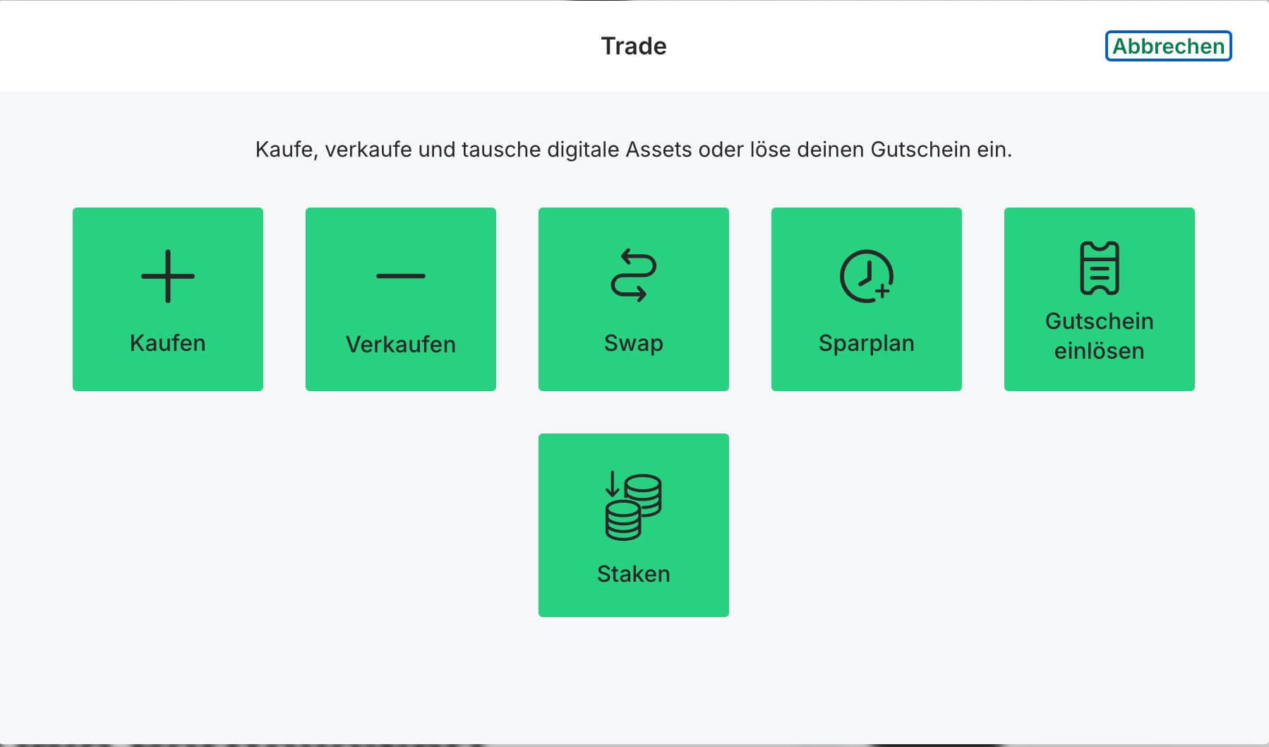 Da Du jetzt Geld auf Deinem Konto aufgeladen hast, kannst Du auch direkt Bitcoin kaufen und verkaufen. Klick dafür auf den „Handel“ Button zu klicken, um zur Liste der Kryptowährungen zu gelangen.