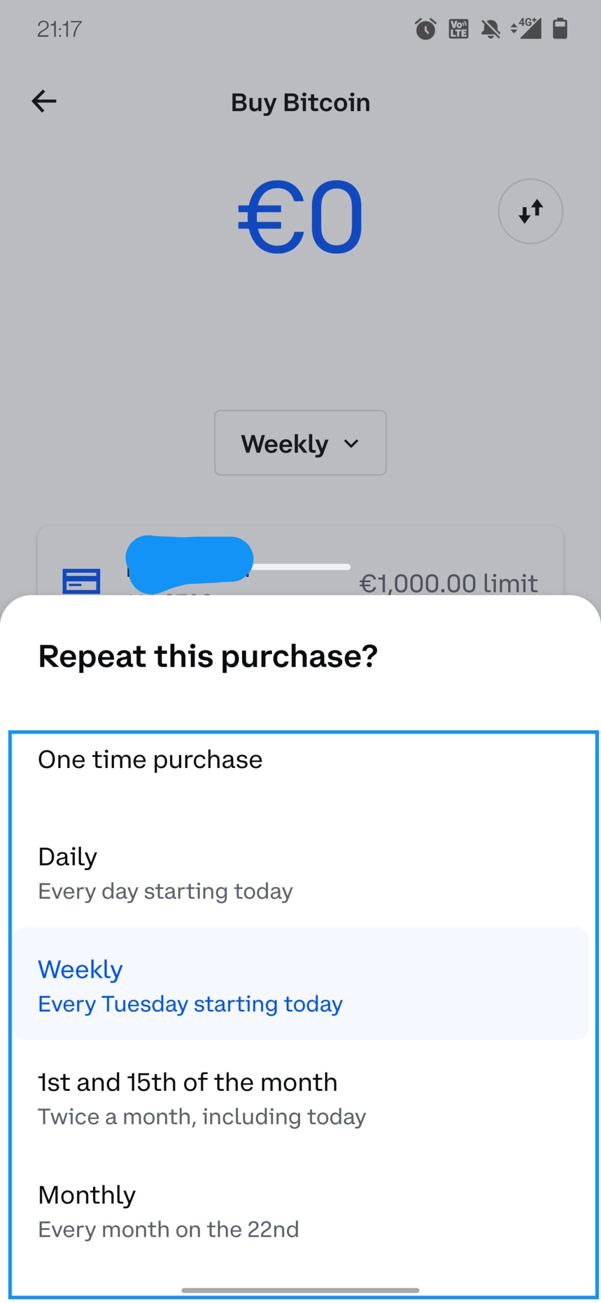 Falls Du Deine monatliche, halbjährliche oder jährliche Investmentsumme schon festgelegt hast, dann steht dem automatischen Bitcoin Sparplan nichts mehr im Weg.