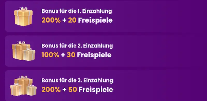 | Willkommensbonus | 350 % Bonus bis 3.000 $ + 200 Freispiele |