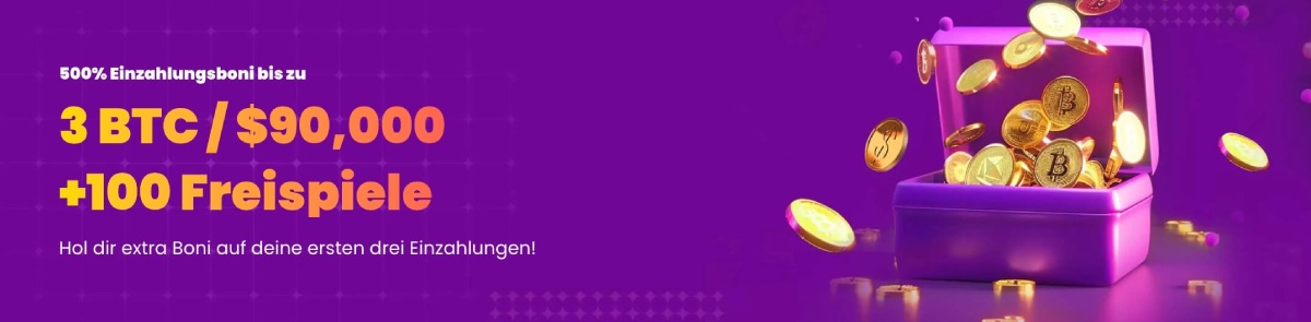 TrustDice Casino begrüßt Dich als neuen Spieler mit einem attraktiven Bonuspaket. Wenn Du Dich anmeldest und Deine ersten Einzahlungen tätigst, kannst Du einen 500 % Bonus von bis zu 3 BTC/90.000 USD sowie 100 Freispiele erhalten.