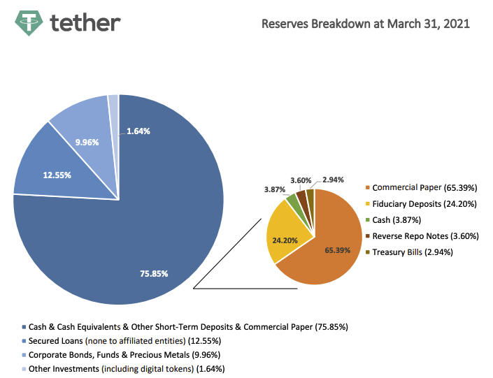 Im Mai 2021 legte Tether die Reserven für den Stablecoin offen und dadurch wurde bekannt gegeben, dass lediglich ein geringer Anteil der eigenen Bestände – 2,9 % – in Bargeld vorliegt.